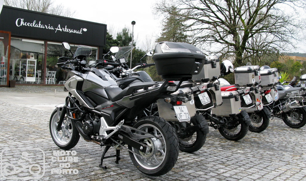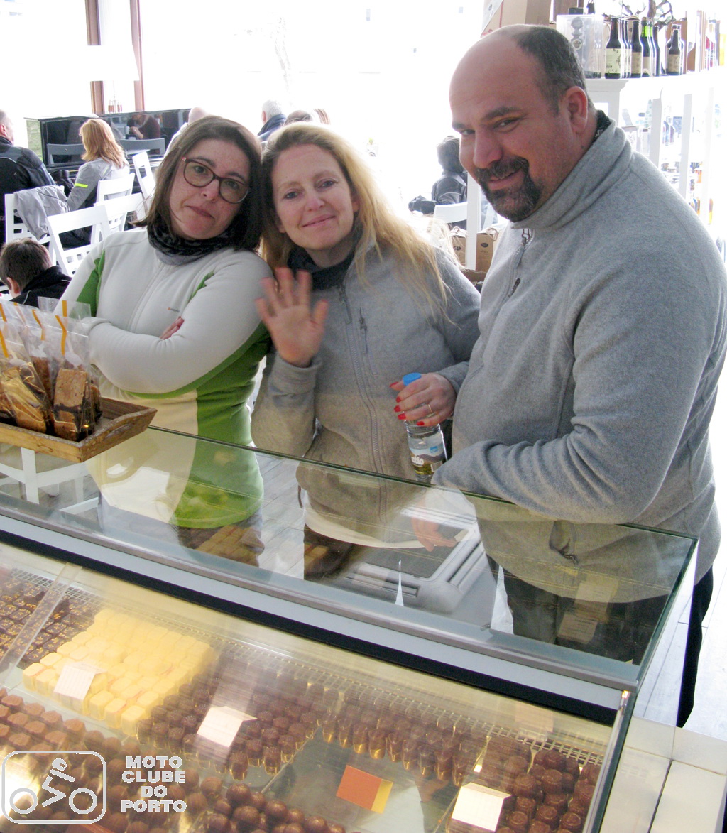 Ritmo prazenteiro até Vila Verde para uma primeira paragem na nossa bem conhecida chocolataria artesanal Chocolate com Pimenta, onde os bombons e os Antoninos, esses pastéis tradicionais recuperados pelo mestre Pedro Sousa, foram acompanhados por um cafezinho à maneira. Pausa para dois dedos de conversa, enaltecendo as “Organizações Isabel & Ribeiro, Sempre com um Tempo Porreiro” antes de mais uns quilómetros, ainda e sempre sem chuva, com passagem por Ponte da Barca e Ponte de Lima, até atingir o alto do Senhor do Calvário. Onde, enquanto se contavam as peripécias da primeira parte de mais um passeio do Moto Cube do Porto marcado pelo forte pendor gastronómico, as deliciosas entradas, do chouriço assado aos bolinhos de bacalhau e rissóis, da broa às azeitonas, iam preparando os estômagos para a monumental cabidela. Cujo aroma começava a invadir aquela que, chegada a época da romaria, nos primeiros dias de agosto, serve de casa dos andores. E se o aroma deixava água na boca, não tardou a comprovar-se a valia destas bravas mordomas, de mão certeira e paladar afinado, com rol de competências comprovadas mais adiante, na altura das sobremesas. Pudins de vários sabores, bolos de bolacha e chocolate e outras tentadoras doçarias caíram ‘que nem ginjas’, prolongando ainda mais um verdadeiro almoço familiar de domingo.