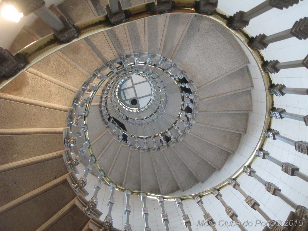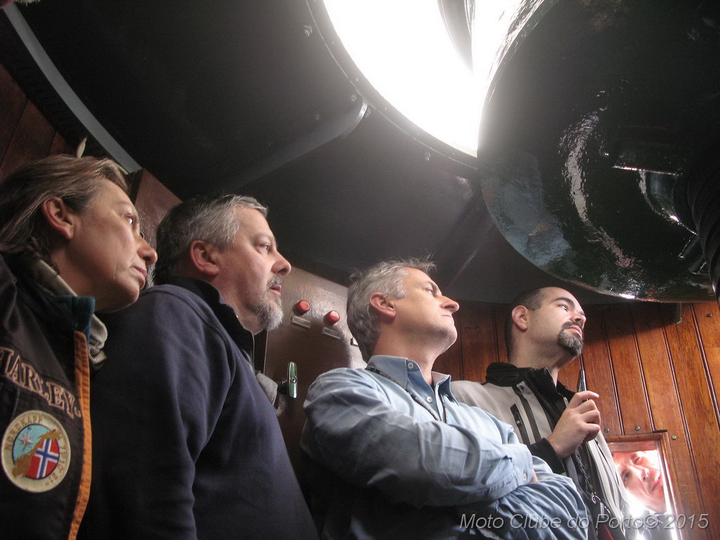 E com a comitiva dividida em três, lá fomos subindo e descendo, sem pôr as mãos no corrimão dourado, sabendo que este farol de 23 metros e cento e poucos acima do nível do mar, emite dois relâmpagos a cada 9,5 segundos.