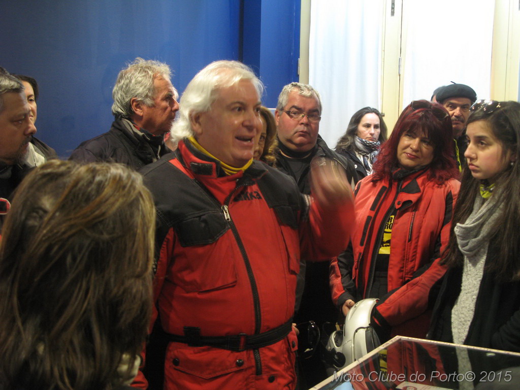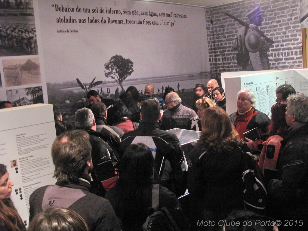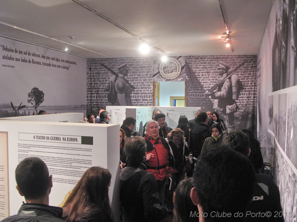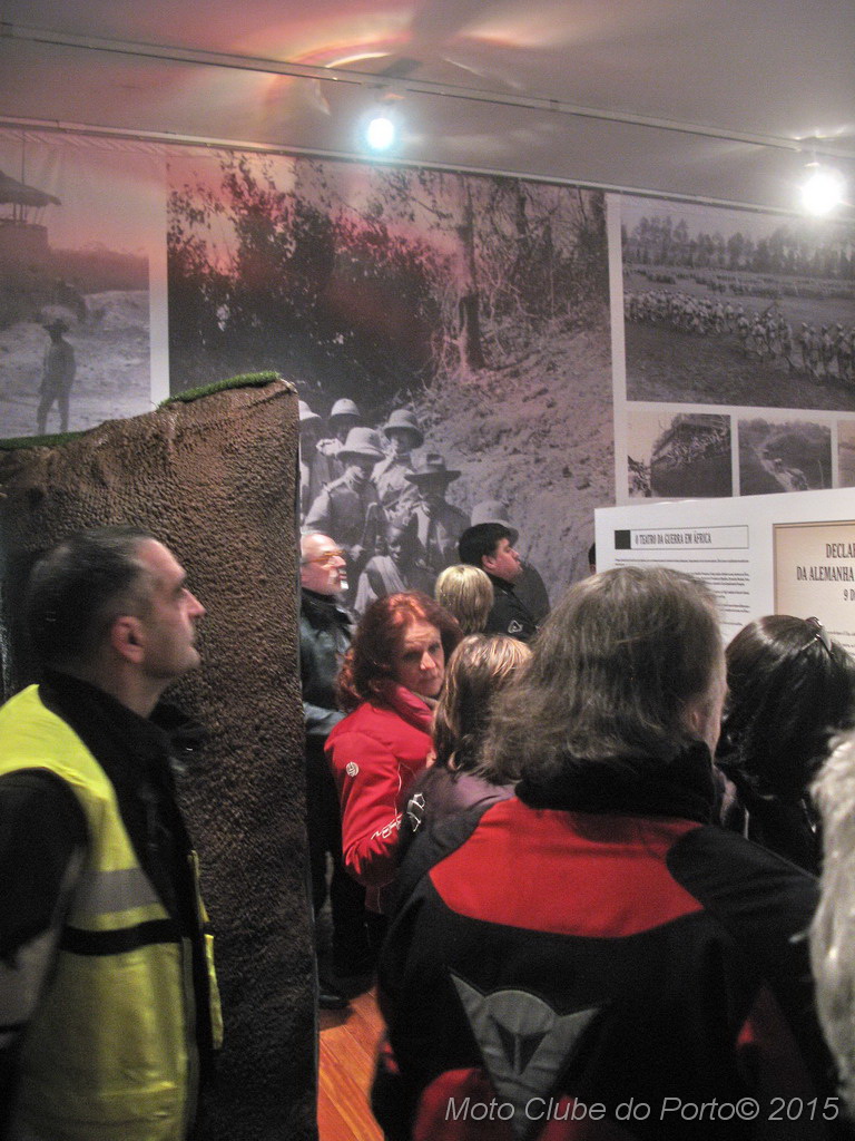 Pontualmente, a comitiva tomou o primeiro café do dia, na sede, recebeu as habituais dicas e fez-se à estrada, pela A28, autoestrada que num ápice colocou a caravana junto aos barcos de pesca artesanal da Apúlia. Voltinha por Ofir e Fão feita, já todas as máquinas estacionavam ordeiramente, em círculo, diante do Museu Municipal de Esposende. Aí, aguardavam-nos os dois motociclistas veteranos irmãos Neiva. E, pela terceira vez para eventos do MC Porto, o historiador Dr. Manuel Albino Penteado Neiva “abriu o livro”! Subiu a um canteiro e explicou-nos em meia hora como Portugal entrou na Grande Guerra de 1914/18, com pormenores e muitas curiosidades. Como o facto de neste 23 de fevereiro de 2016 se completar um século exacto do nosso aprisionamento a mais de 50 navios alemães, em portos portugueses. E que os nossos soldados foram para a guerra armados de… bombos e concertinas. E como detestavam a comida que os ingleses lhes davam. Mas essencialmente a vida dificílima e mortal nas trincheiras. Foram batalhas atrozes que dizimaram milhares de jovens homens portugueses, muitos deles esposendenses.