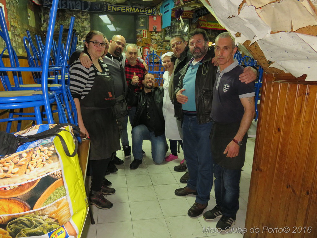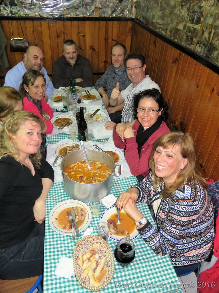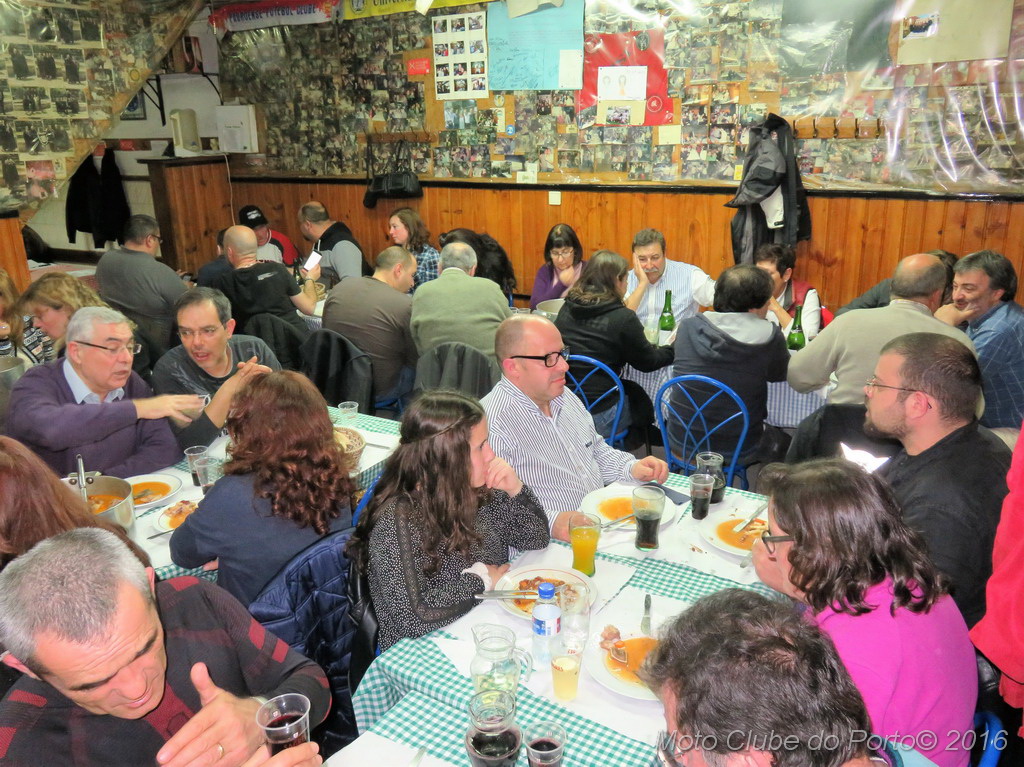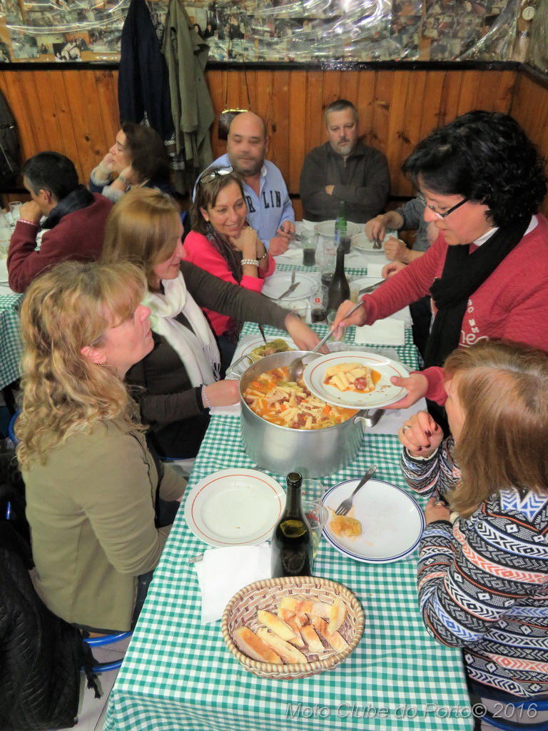 30 Anos 12 Tascas - O Maior44 sócios e seus familiares desbundaram o quarto episódio da saga “30 anos - 12 Tascos” n’O Maior, tasquinha muito conhecida por estudantes em S. Roque da Lameira. E agora também por nós. Neste sábado, 16 de Abril, menos apertadinhos e muito bem-dispostos, os motociclistas consolaram-se com entradas típicas e a já famosa massa à lavrador - que é uma refeição muito apreciada pelas gentes do campo e arredores – e que foi o prato escolhido. Claro que tudo bem regado, desde branco ao tinto, passando pela receita.