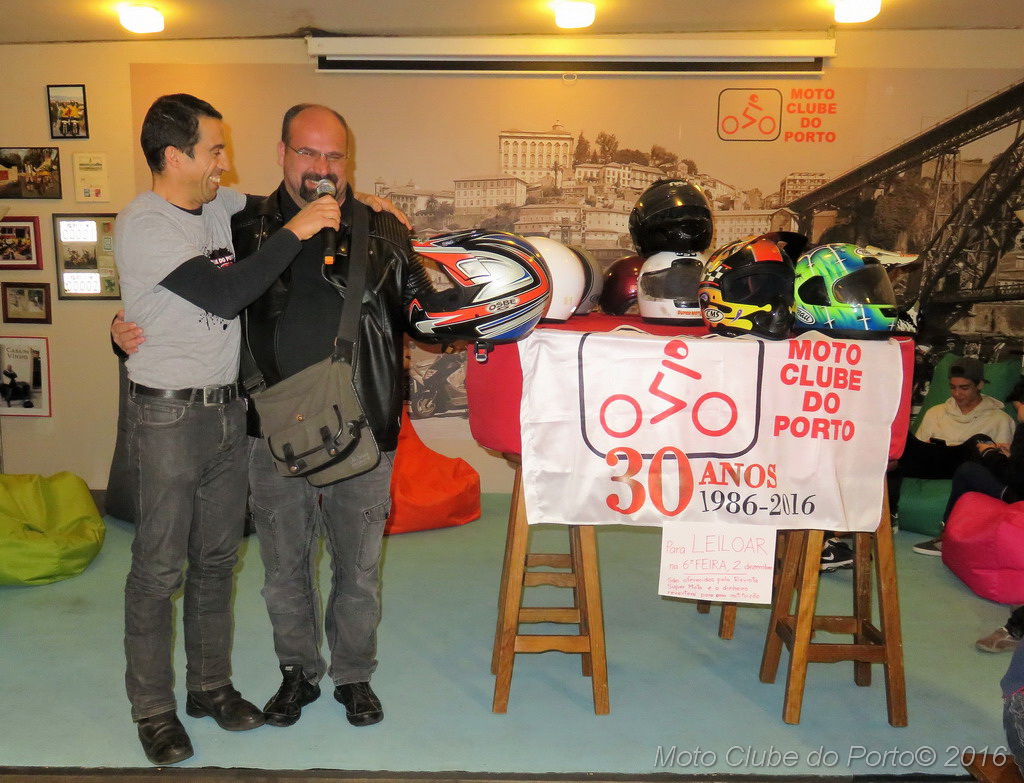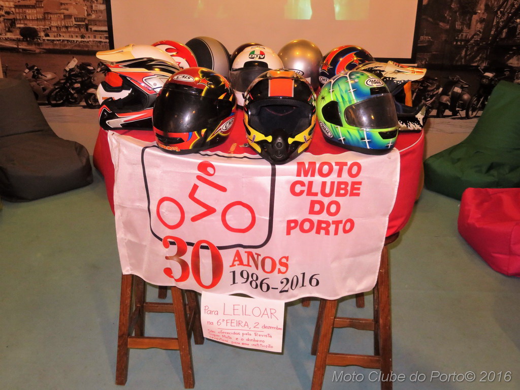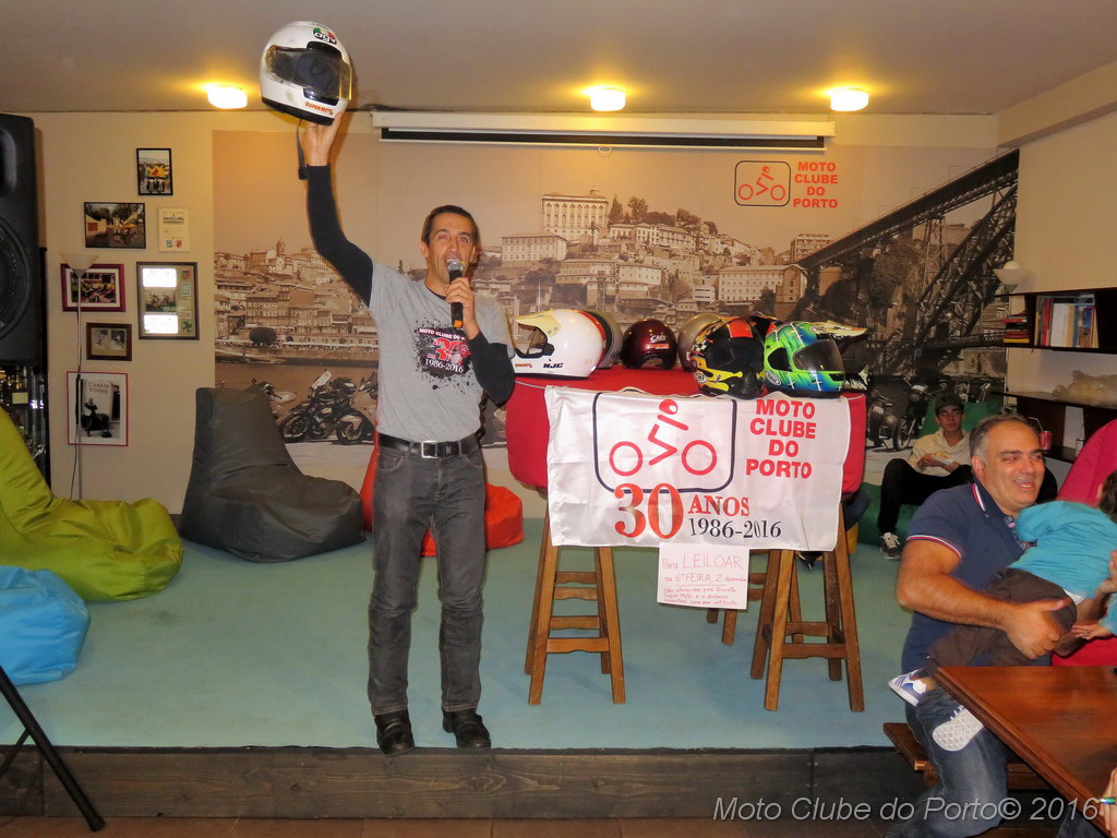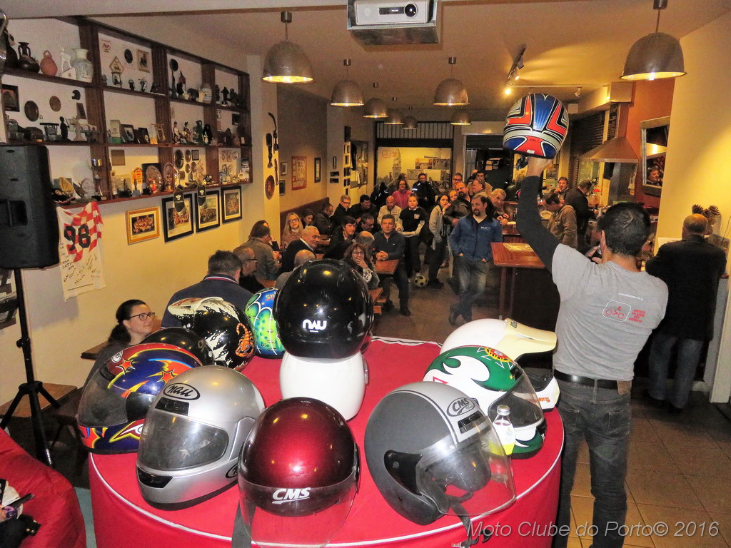 Com boa disposição e muita interacção por parte das dezenas de sócios presentes na sede do clube, os 13 capacetes leiloados - doados por Maria João Gouveia, proprietária da extinta revista SuperMoto - chegaram a originar grandes despiques de lances.