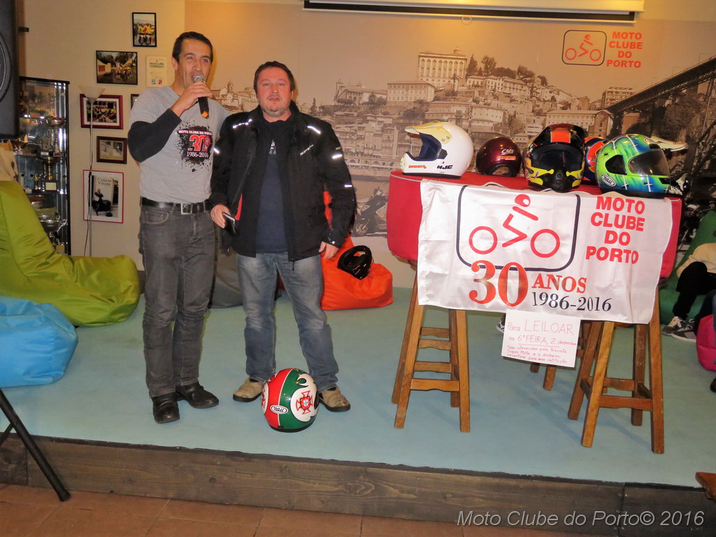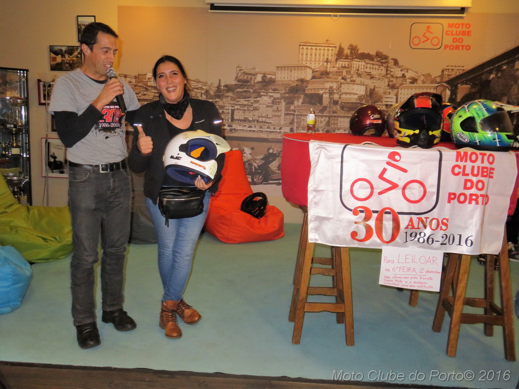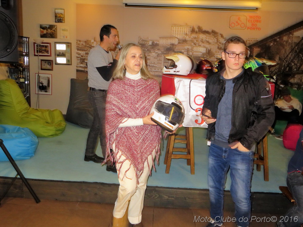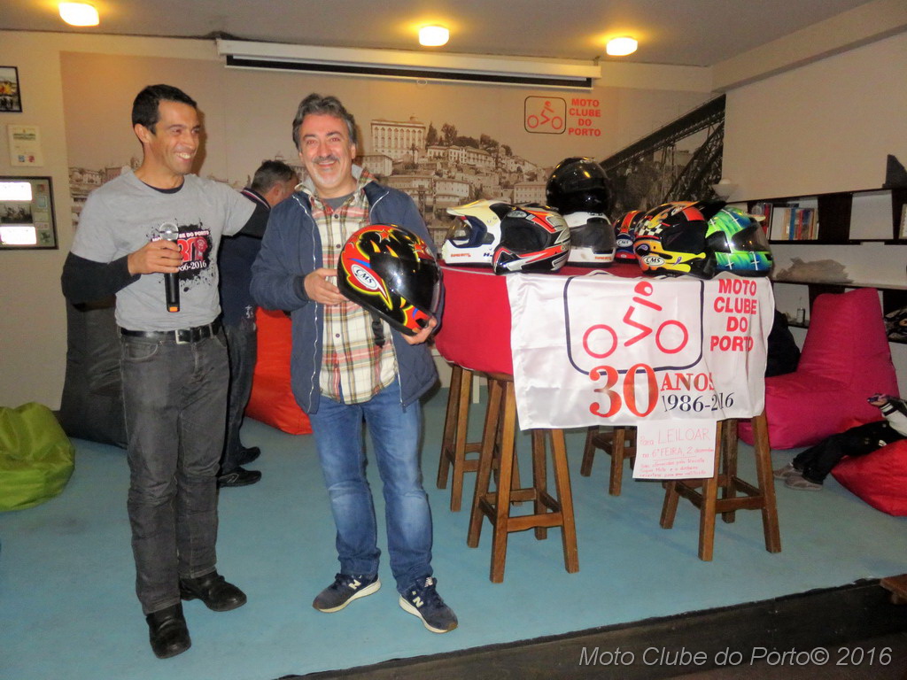 Com boa disposição e muita interacção por parte das dezenas de sócios presentes na sede do clube, os 13 capacetes leiloados - doados por Maria João Gouveia, proprietária da extinta revista SuperMoto - chegaram a originar grandes despiques de lances.