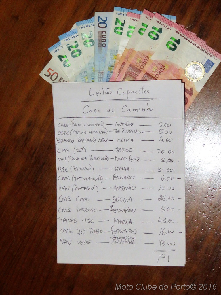 Bem acima das previsões mais optimistas, o leilão solidário que o MC Porto promoveu na passada 6ª feira, 2 de dezembro, rendeu 191€ para a Casa do Caminho, orfanato que acolhe crianças dos zero aos seis anos de idade.