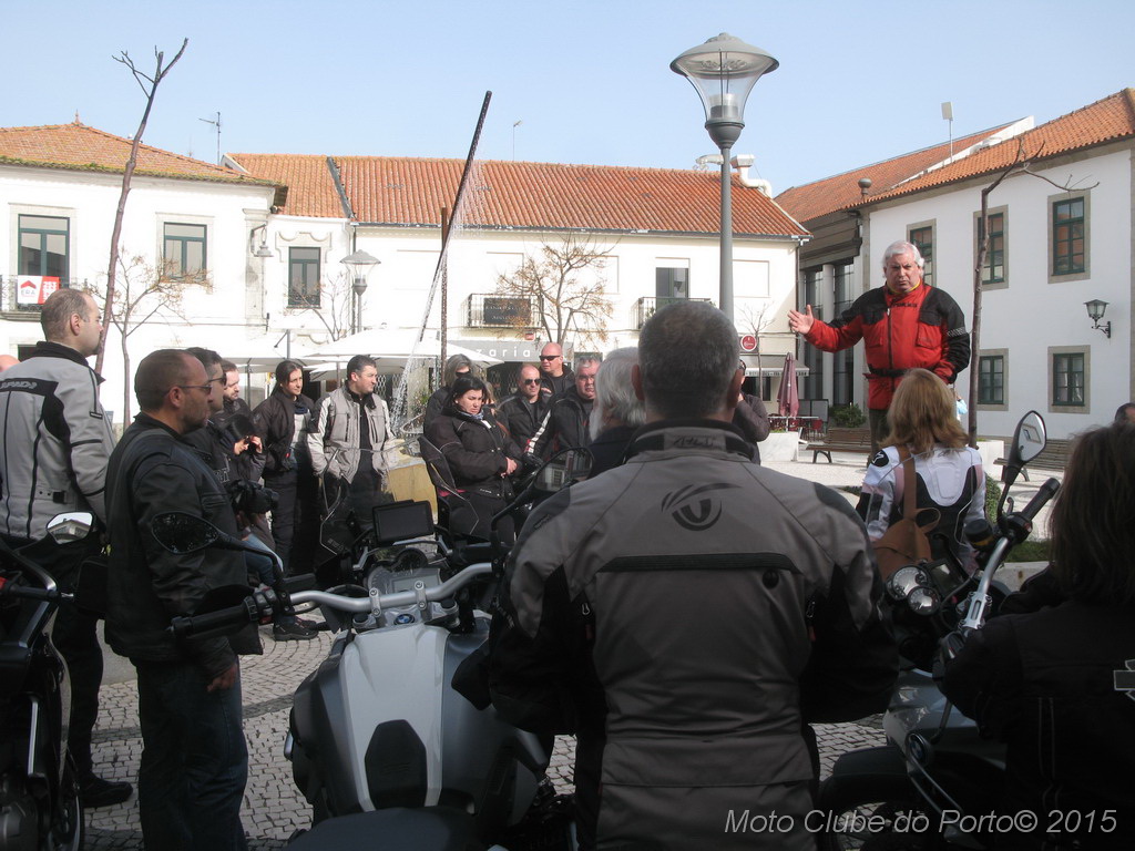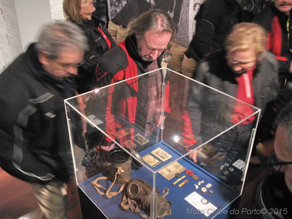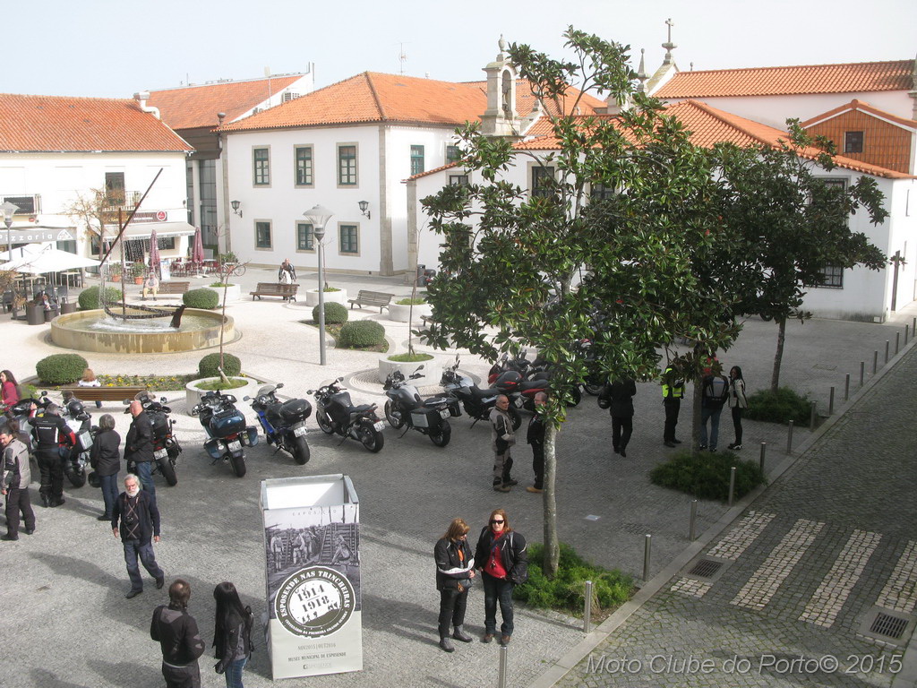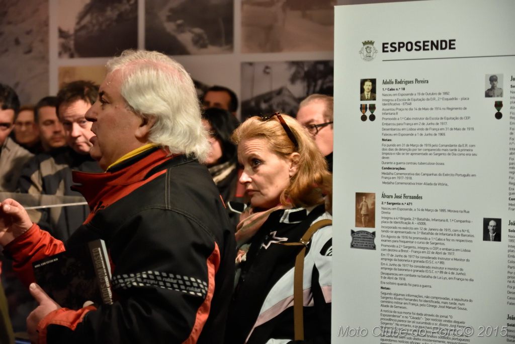 Pontualmente, a comitiva tomou o primeiro café do dia, na sede, recebeu as habituais dicas e fez-se à estrada, pela A28, autoestrada que num ápice colocou a caravana junto aos barcos de pesca artesanal da Apúlia. Voltinha por Ofir e Fão feita, já todas as máquinas estacionavam ordeiramente, em círculo, diante do Museu Municipal de Esposende. Aí, aguardavam-nos os dois motociclistas veteranos irmãos Neiva. E, pela terceira vez para eventos do MC Porto, o historiador Dr. Manuel Albino Penteado Neiva “abriu o livro”! Subiu a um canteiro e explicou-nos em meia hora como Portugal entrou na Grande Guerra de 1914/18, com pormenores e muitas curiosidades. Como o facto de neste 23 de fevereiro de 2016 se completar um século exacto do nosso aprisionamento a mais de 50 navios alemães, em portos portugueses. E que os nossos soldados foram para a guerra armados de… bombos e concertinas. E como detestavam a comida que os ingleses lhes davam. Mas essencialmente a vida dificílima e mortal nas trincheiras. Foram batalhas atrozes que dizimaram milhares de jovens homens portugueses, muitos deles esposendenses.